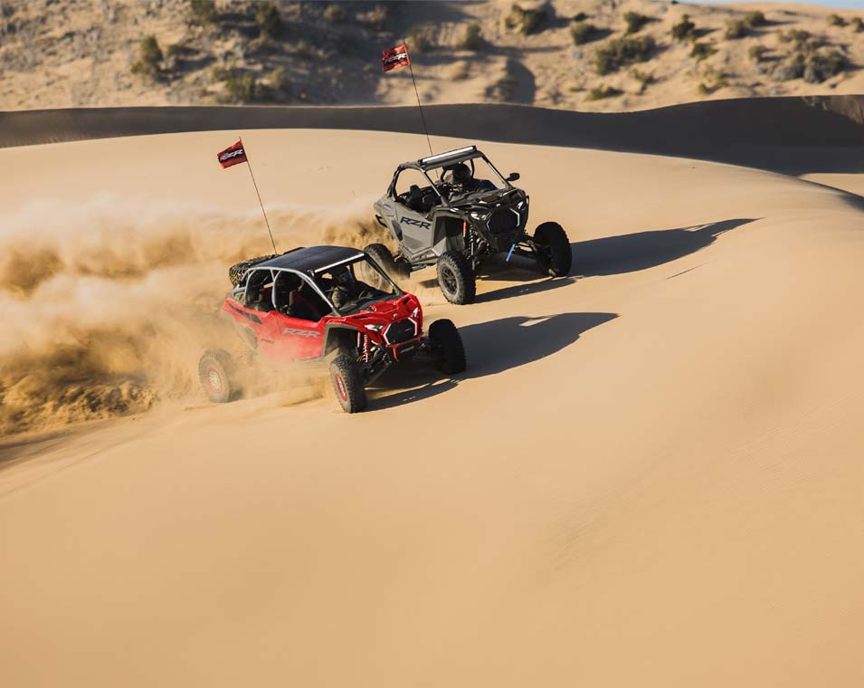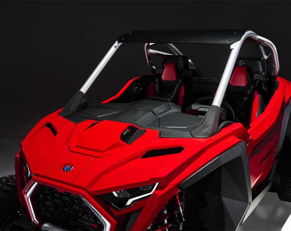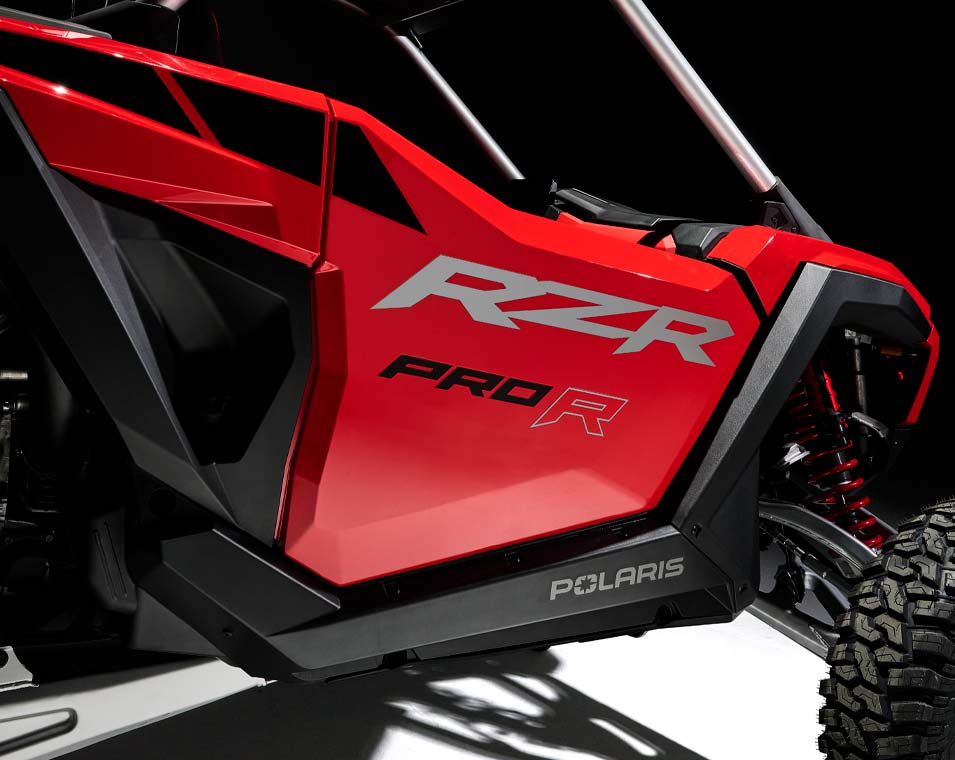 Chega e destaca-te com o design arrojado do RZR Pro R – oferecendo ainda mais estilo e desempenho para vencer em qualquer terreno.